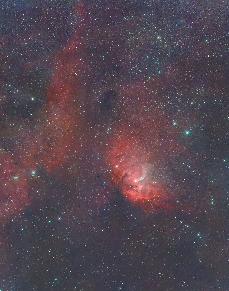 SHO合成の場合、星の色はR = 0.4*Ha + 0.6*SII, G = 0.4*OIII + 0.3*Ha + 0.3*SII, B =