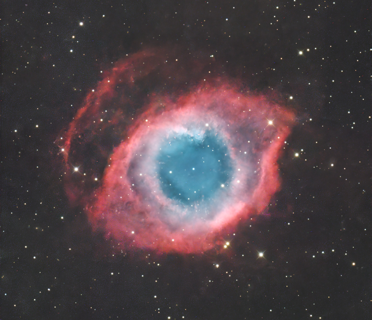 OIII という謎の数式とSPCCでごまかす事が出来るのですが、デュアルバンドフィルターではやりようが無いので、星だけ別に撮影して合成するという方法を使っています。