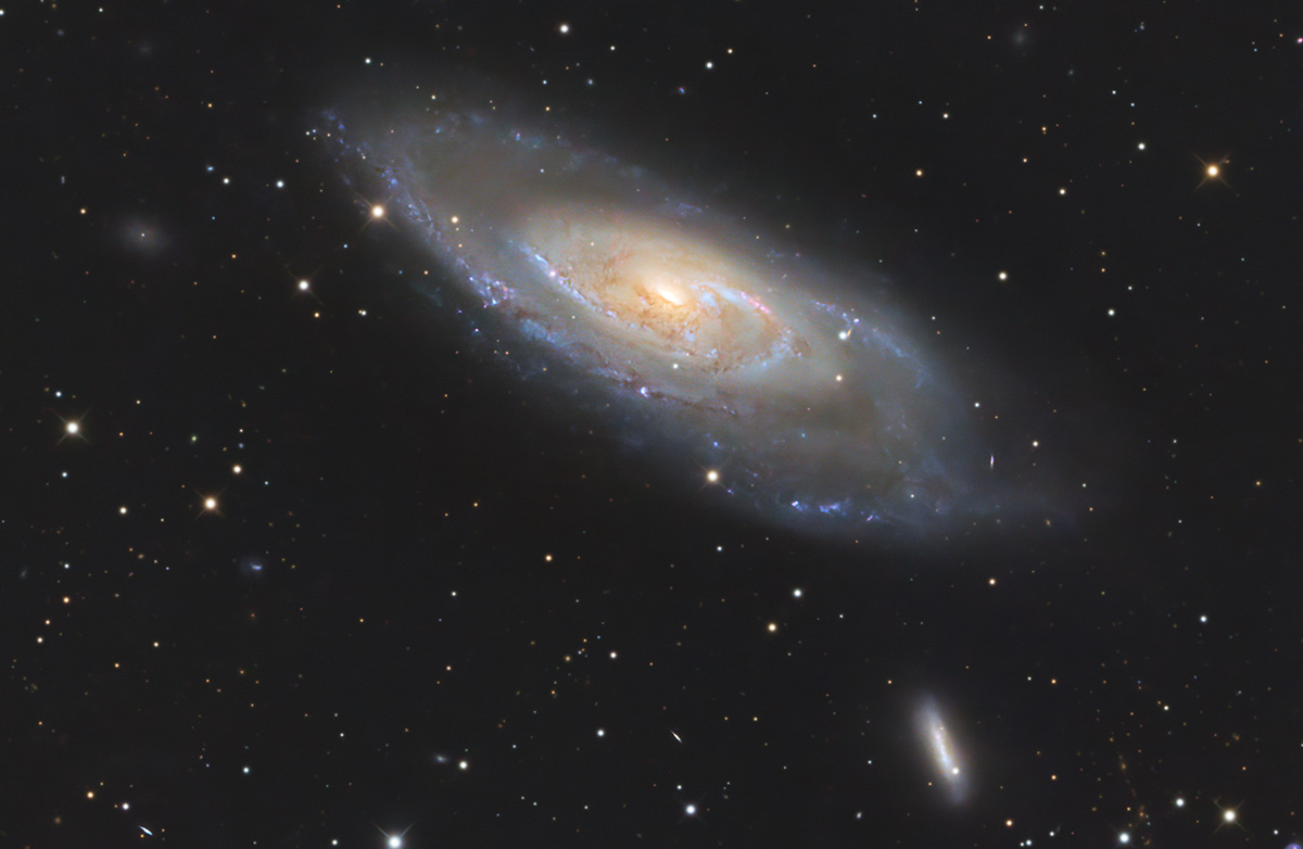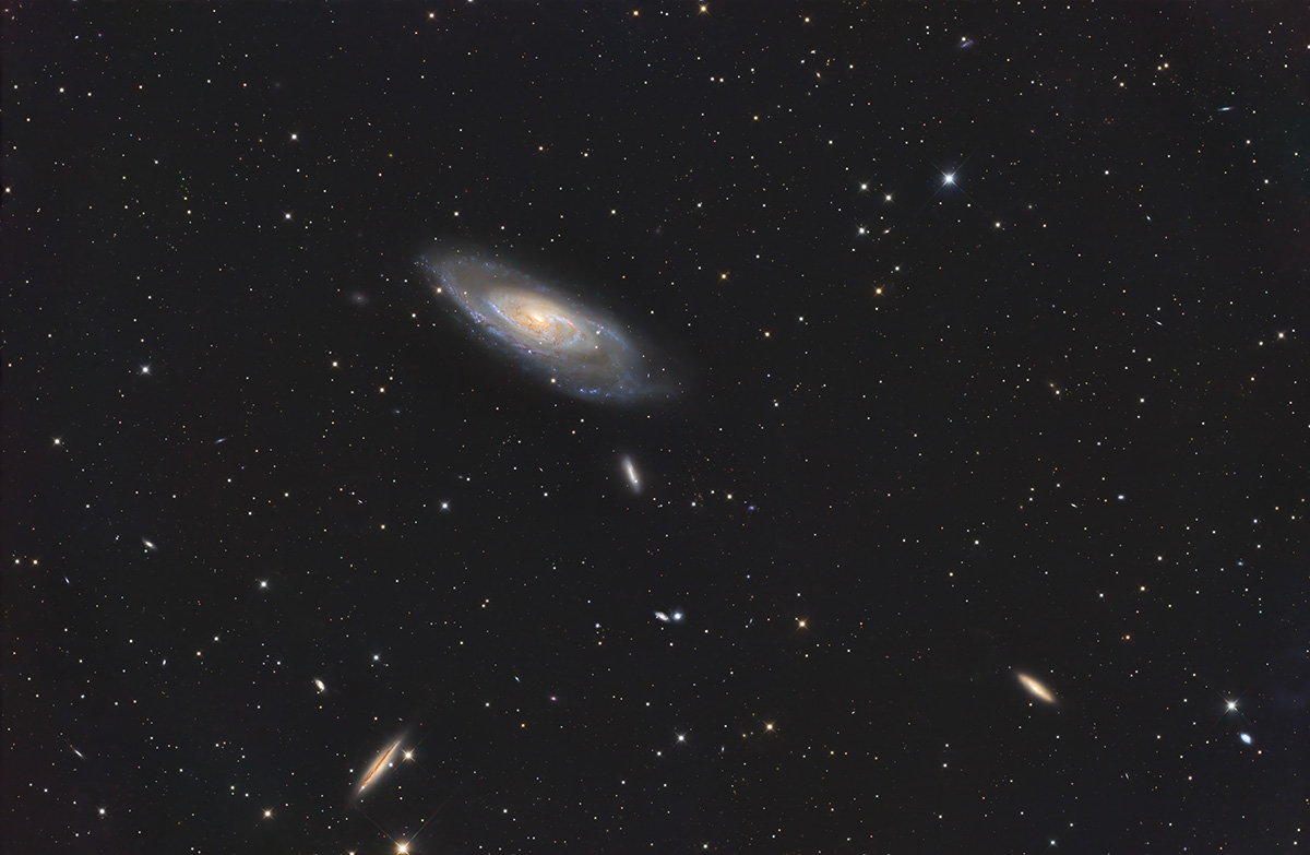 画像処理はさらっと10分程度で終わりです。SCA260の画像は周辺減光が少なく作業は楽です。カメラも冷却COMSはEOS6Dのような癖がないので手間がかかりません。もっと銀河内の彩度を上げても良い感じですが、控えめにしてました。最近、背景の明るさを25-30程度に押さえています。以前は50を基準にしていましたが、なんとなく眠く感じてしまうので、背景を暗くすることでキリっと仕上げるように心がけています。